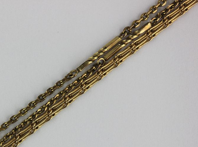 Two gold neckchains comprising an oval and twisted bar link neckchain detailed 14k, and a 9ct gold twin bar link neckchain on a boltring clasp, combined weight 4.7g