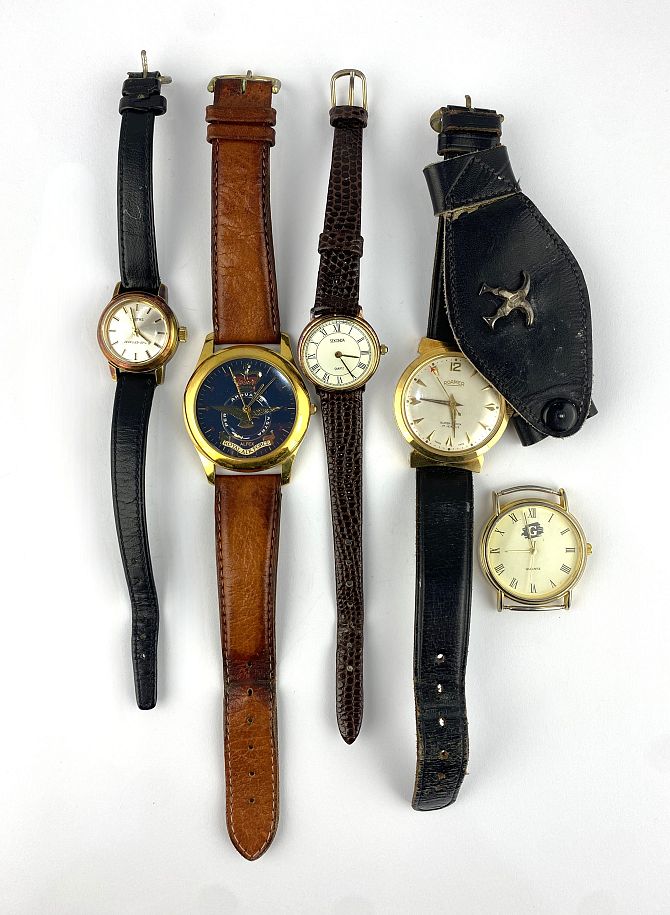 A Roamer gilt metal fronted and steel backed gentlemens wristwatch, with a box, and four further wristwatches, to include Smiths