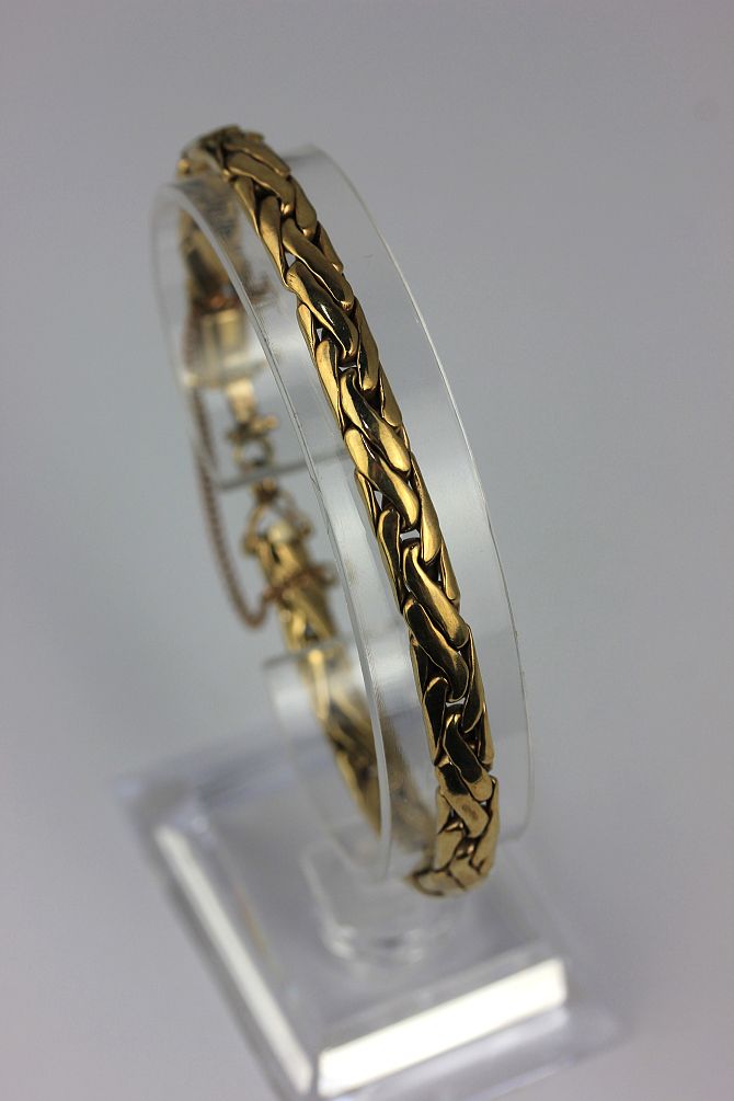 An 18ct two-colour gold bracelet in a woven linkage design with twistover motifs at intervals on a snap clasp, length 18.8cm, 26g