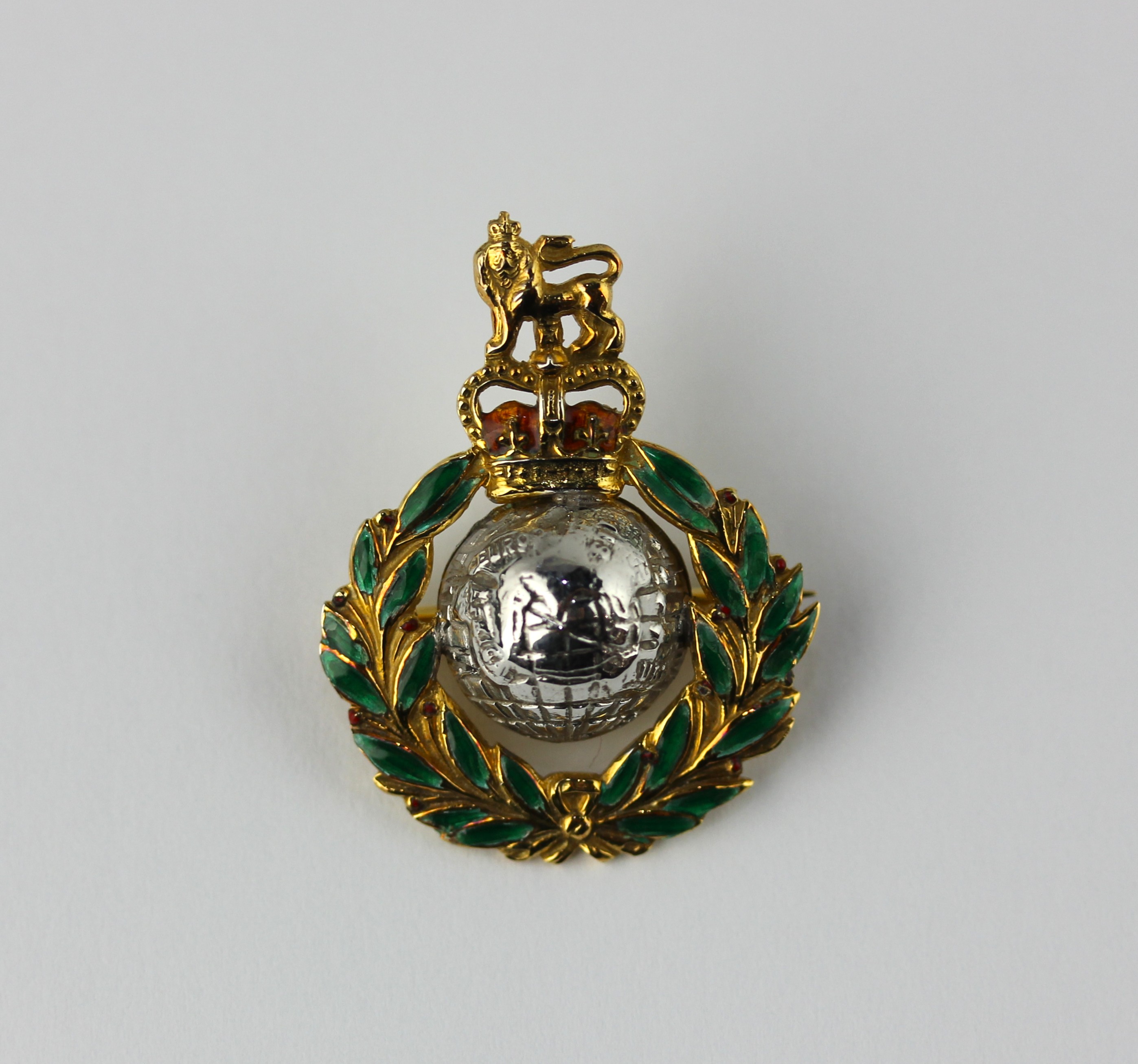 A 9ct two colour gold and enamelled brooch designed as the badge of the Royal Marines gross weight 4.9g