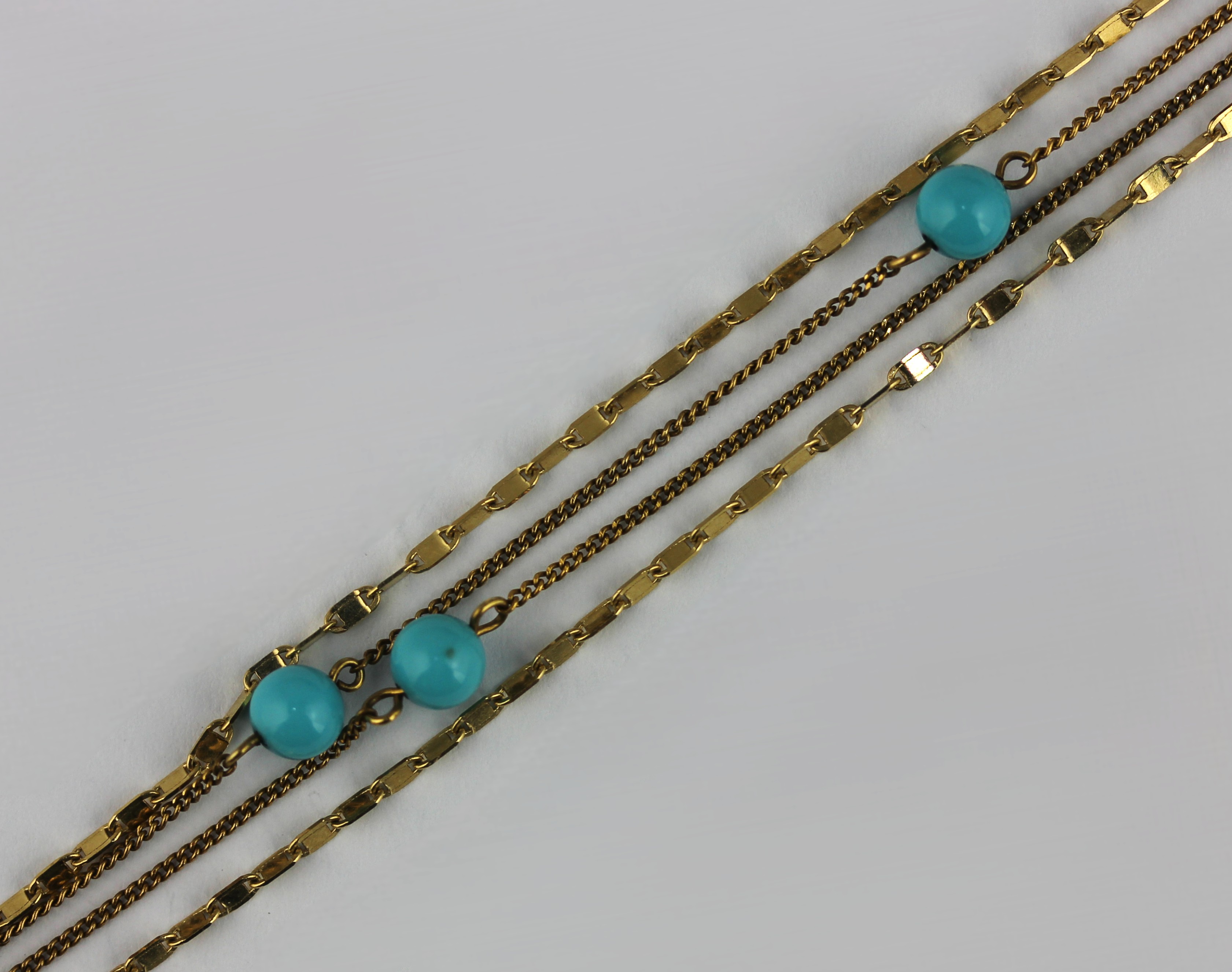 A gold neckchain and a gold and imitation turquoise necklace the neckchain detailed 750 Italy, weight 2.3g; the imitation turquoise necklace on a boltring clasp detailed 9ct
