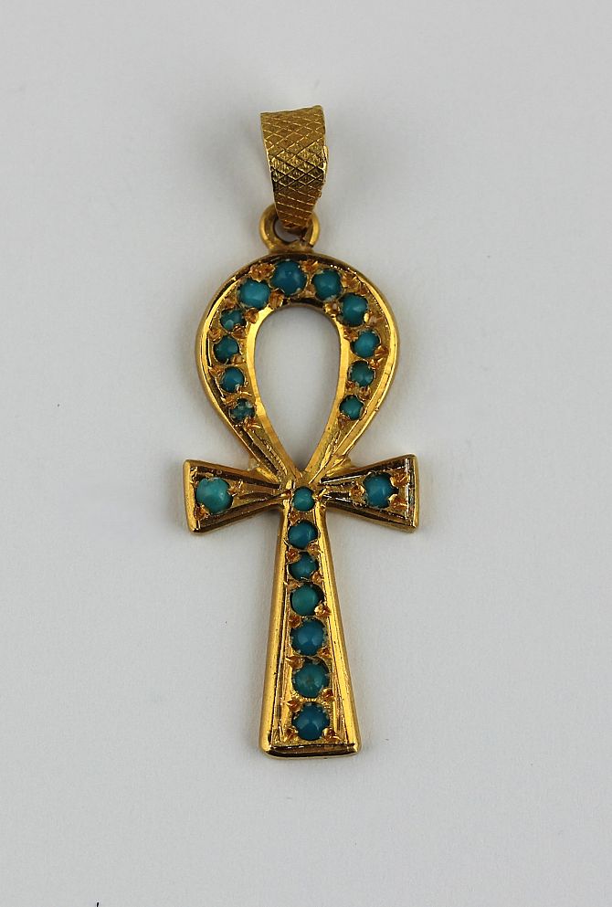 An Egyptian gold and imitation turquoise pendant, designed as an Ankh, gross weight 4.4g