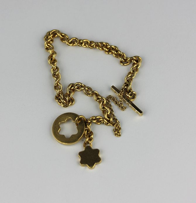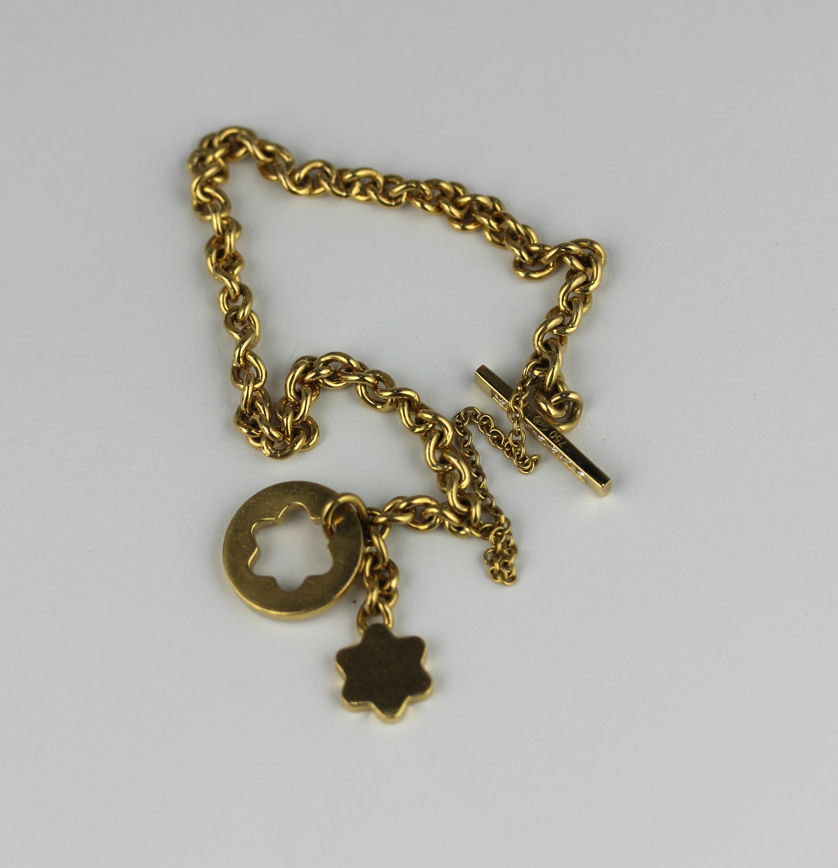 A Montblanc 18ct gold and diamond set bracelet in a twisted oval link design, with a bar pendant mounted with seven circular cut diamonds, gross weight 21.2g