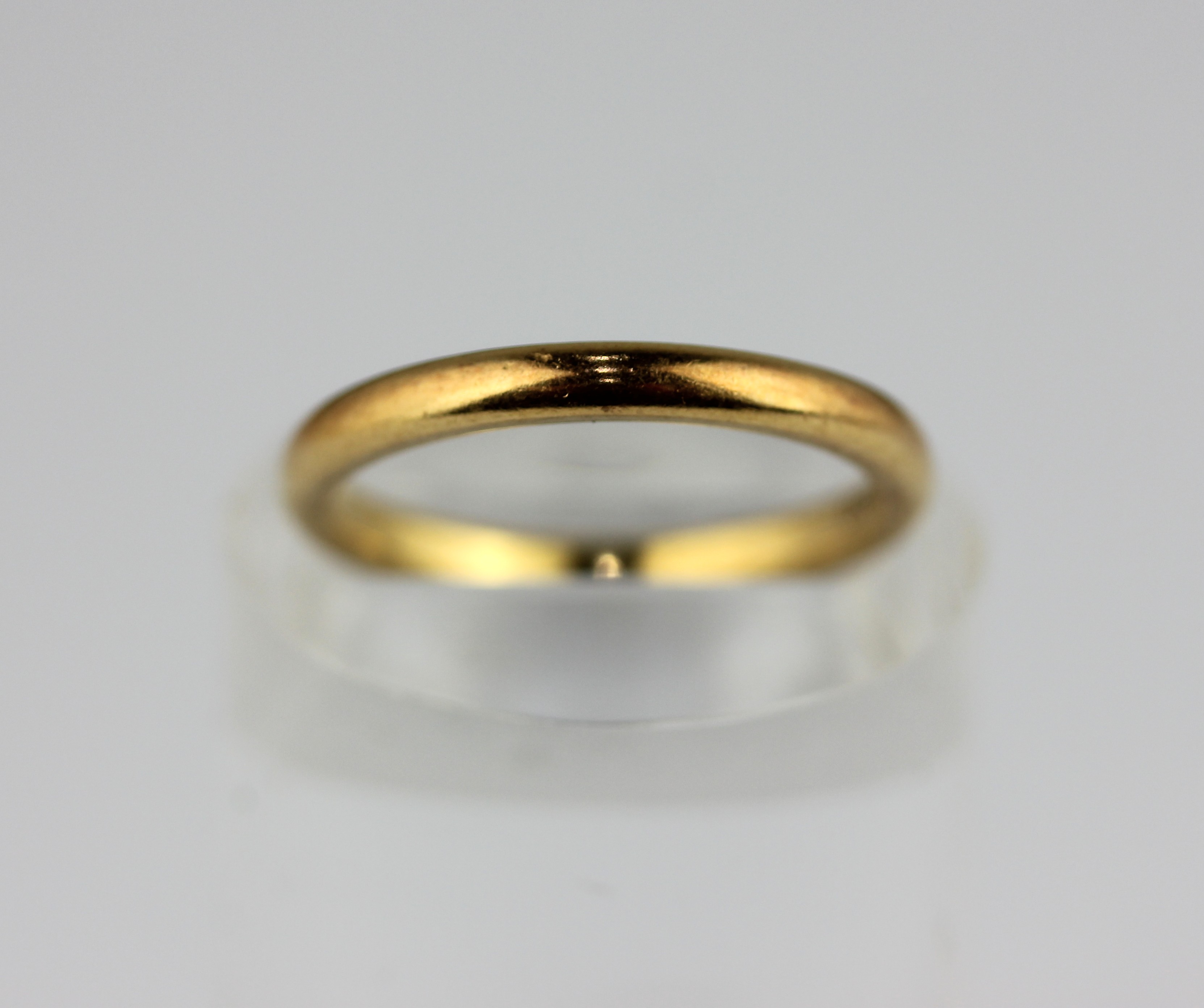 An 18ct gold plain wedding ring Birmingham 1930, ring size N, gross weight 3.7g
