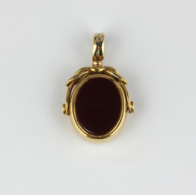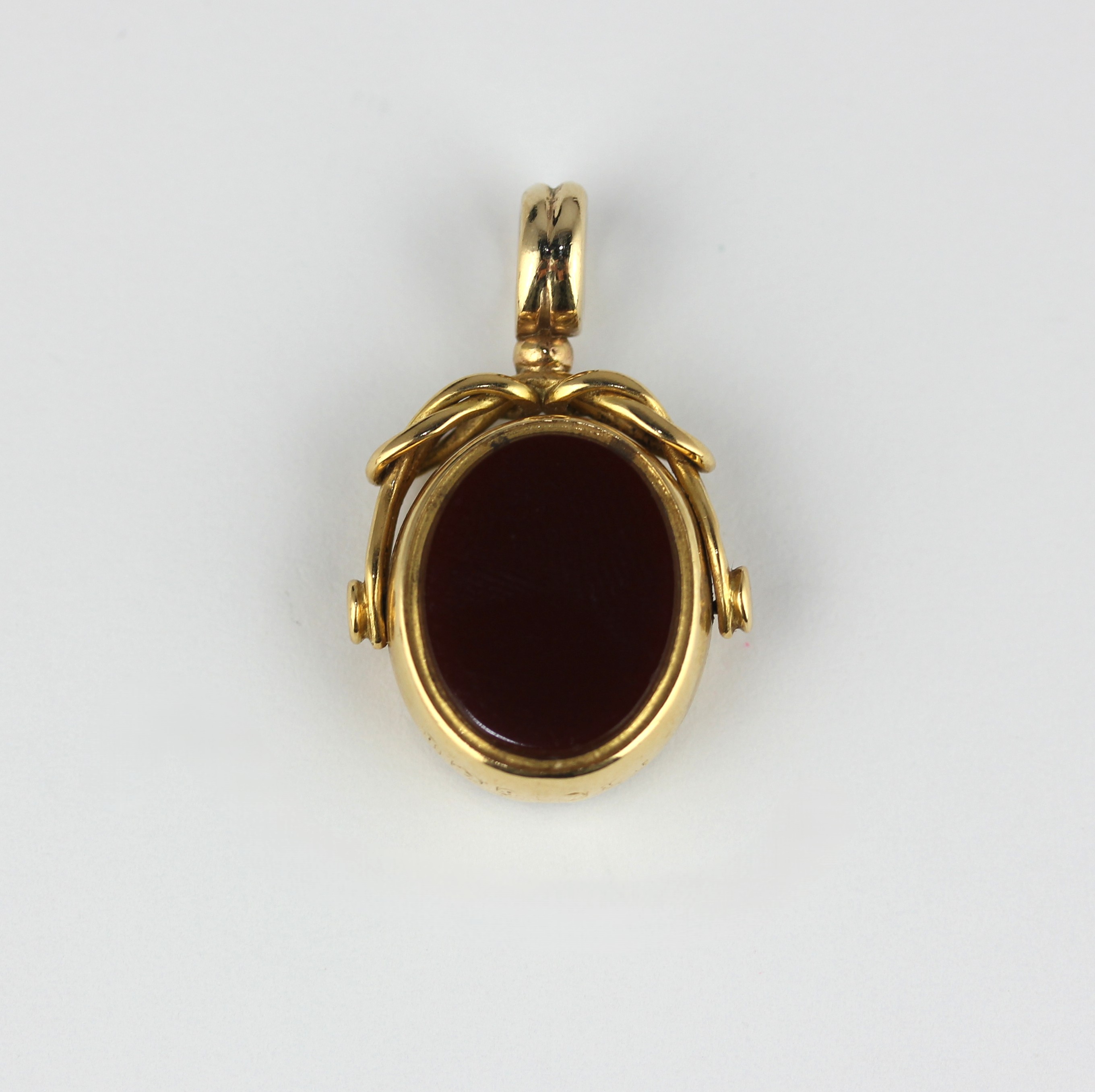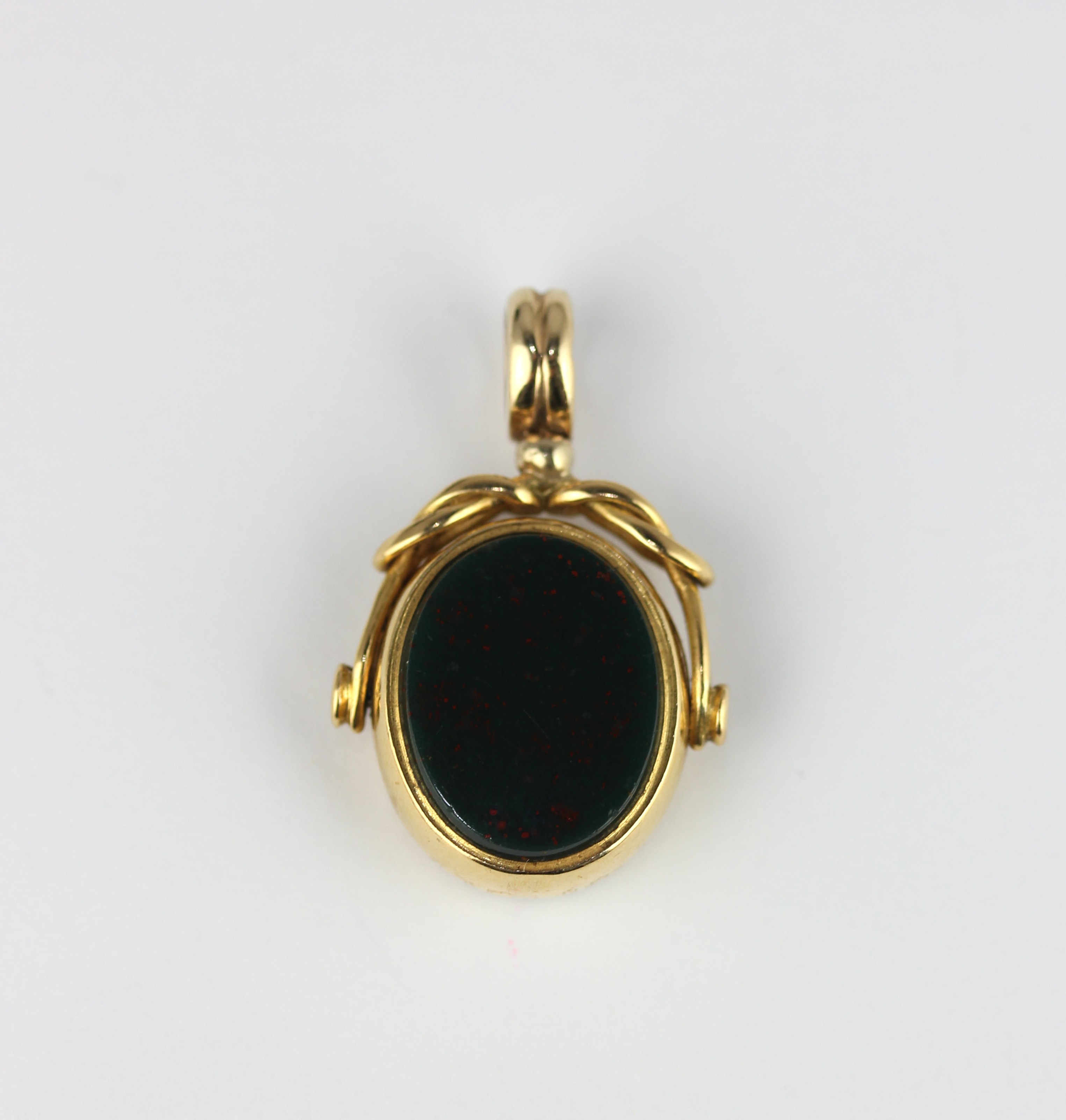 An 18ct gold mounted cornelian and bloodstone oval rotating fob seal, Birmingham 1907, gross weight 7.7g