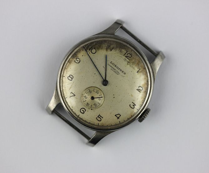 A Longines steel cased gentleman’s wristwatch a signed silver dial with Arabic numerals, subsidiary seconds and blued steel hands