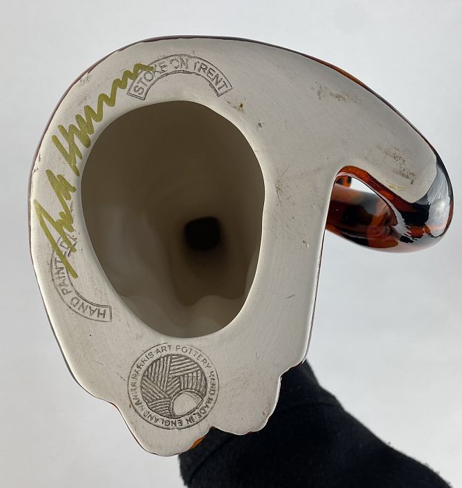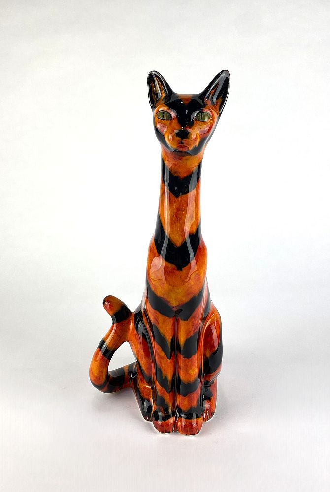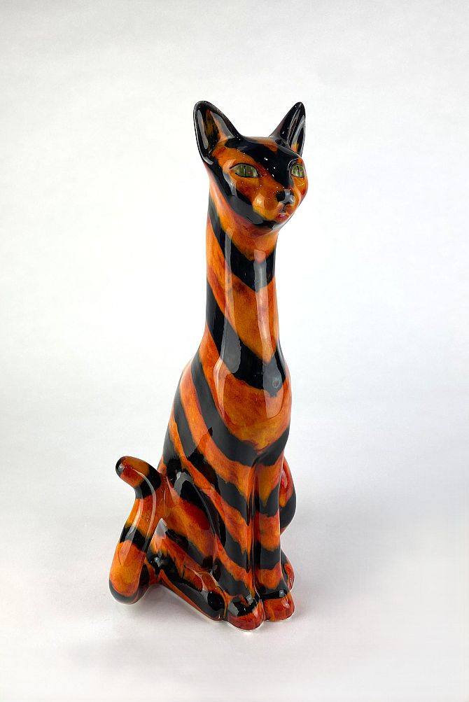 An Anita Harris art pottery extra large Cleopatra Tiger Stripe cat, with metallic green painted eyes, signed, 38.5cm high