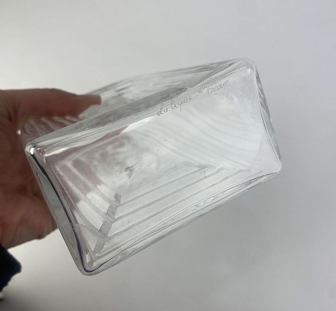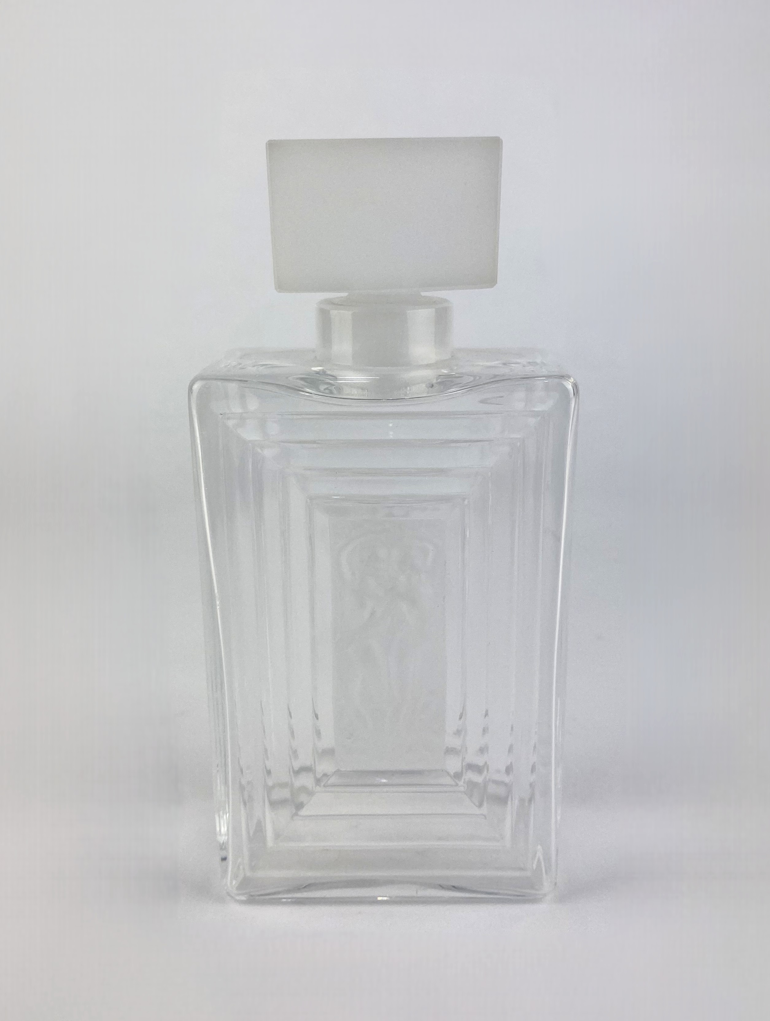 A Lalique Duncan No 3 glass perfume bottle and stopper, of rectangular form with two frosted panels depicting nude dancers within a stepped border, engraved 'Lalique France' to base, 20cm high The Duncan collection was designed by René Lalique in 1931 as a tribute to American dancer Isadora Duncan
