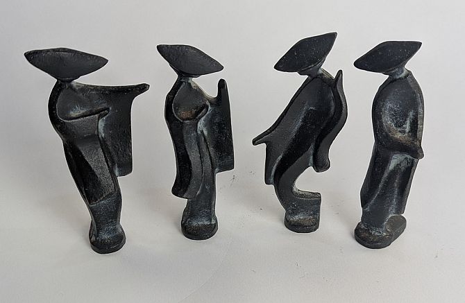 A set four cast metal figures of dancing geisha, 20th century, in a variety of poses, height 10.5cm (4)
