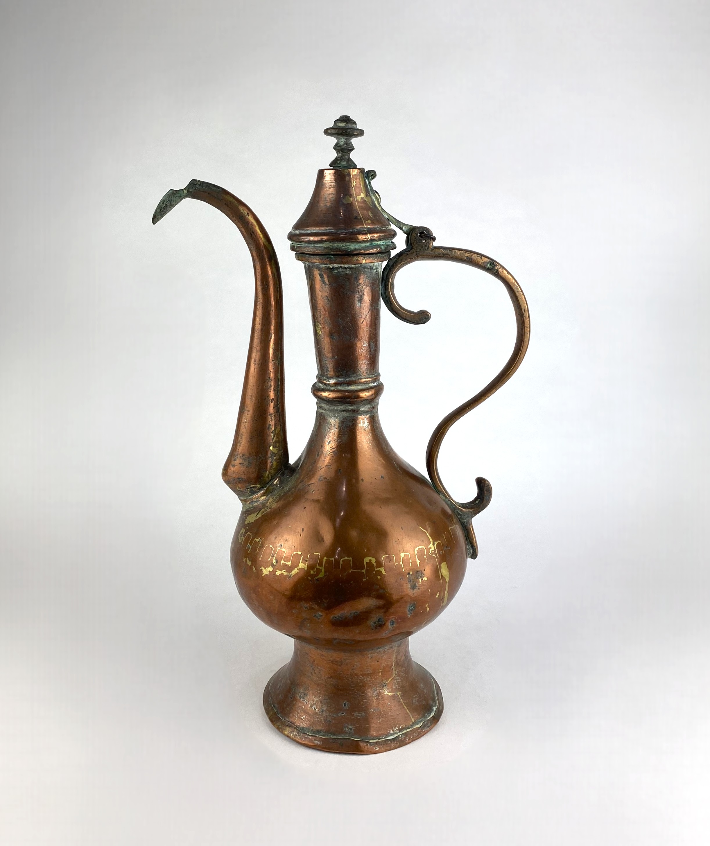 An old Middle Easter Persian copper Dallah / pitcher, 37cm high.