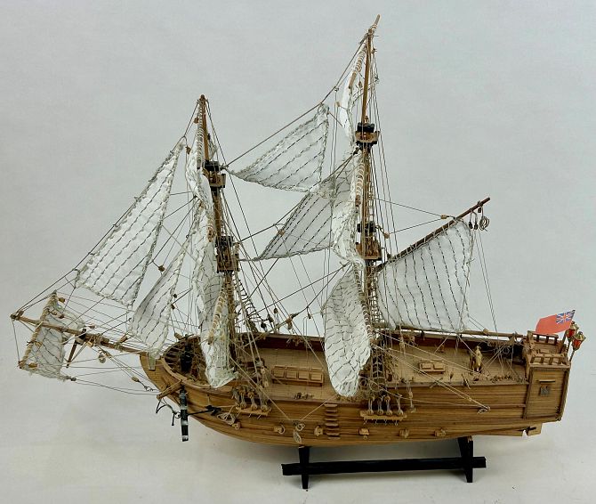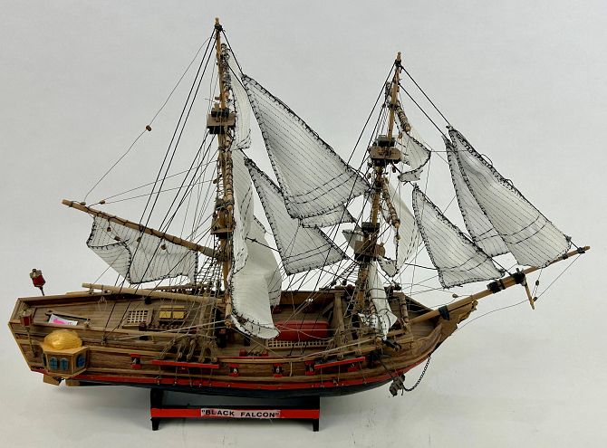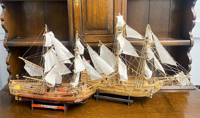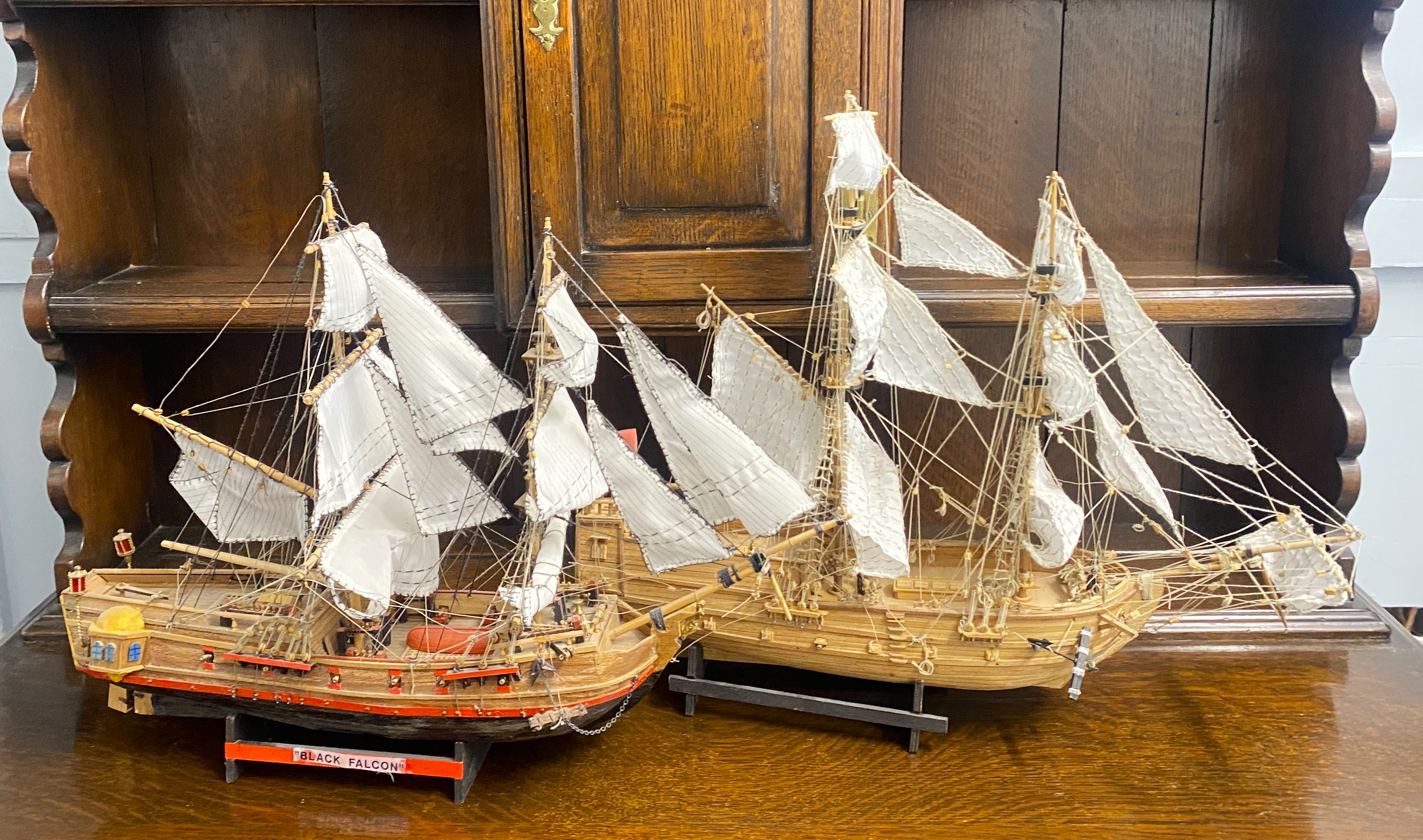 Two scratch built model ships, 20th century, including 'Black Falcon', 38cm high, and one other 42cm high, (2).