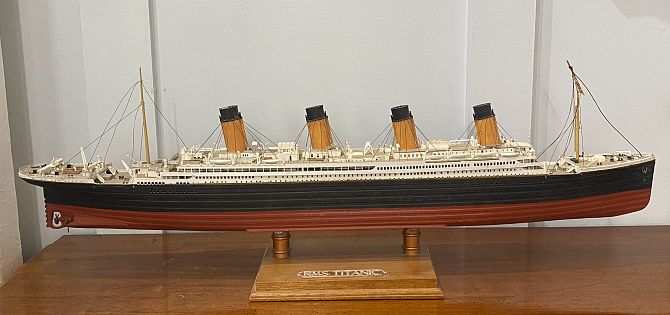 A scratch built model of R.M.S Titanic, 20th century, 77cm long by 21cm high.