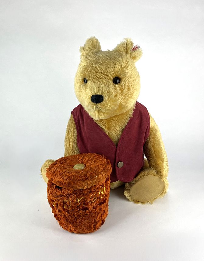 A Steiff Classic Pooh Winnie the Pooh large golden mohair teddy bear, limited edition, with tags, 50cm high with embroidered drawstring bag