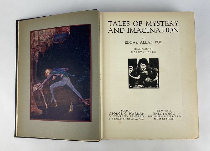 (Clark, Harry - Illus.) 'Tales of Mystery and Imagination' by Edgar Allan Poe, George G. Harrap & Company, London and Brentano's New York, printed at The Ballantyne Press., first edition, 8vo., with 8 colour illustration (some pages joined - lacking dust jacket)