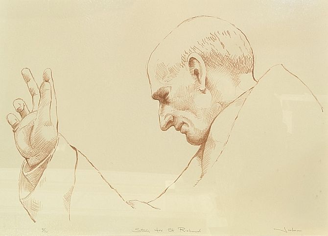 Philip Jackson (b 1944), Study for St Richard, print, numbered 8/50 and signed in pencil, 48cm by 68cm (ARR)