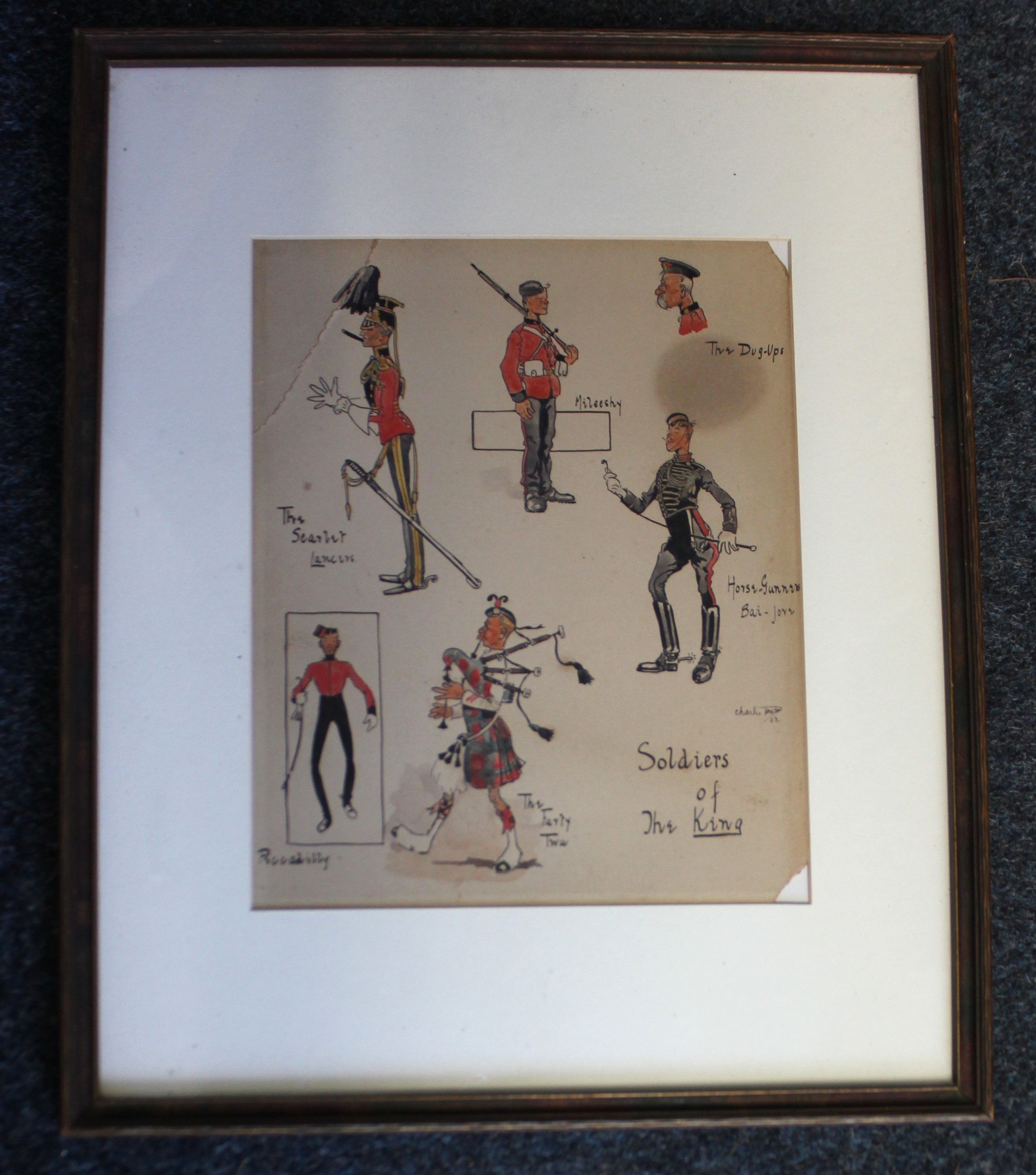 Charles Johnson Payne 'Snaffles' (1884-1967), Soldiers of the King, ink and watercolour, signed and dated 03, 24cm by 19cm (a/f) (ARR)