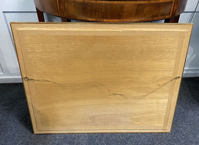 Peter McIntyre (1910-1995, New Zealand), river landscape with bridge, oil on can...