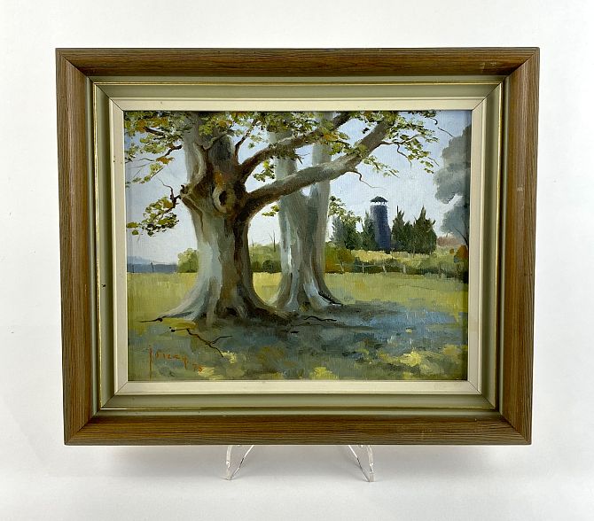 Richard Joicey (British, 1925 - 1994), 'Langstone Mill from Wade Court', oil on board, signed lower left and dated '75', framed, 19cm by 23.5cm (ARR)