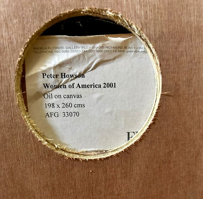 Peter Howson OBE (British, b.1958), 'Women of America', 2001, oil on canvas, signed, label verso for the Amelia Flowers Gallery, 199 - 205 Richmond Road, London, 198cm by 260cm, framed. (ARR)