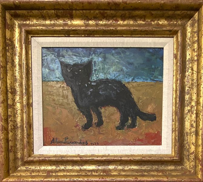 Alan Lowndes (British, 1921 - 1978), 'Seaside Cat', oil on board, signed, dated 1956, titled by hand verso, 24cm by 30cm, framed. (ARR)
