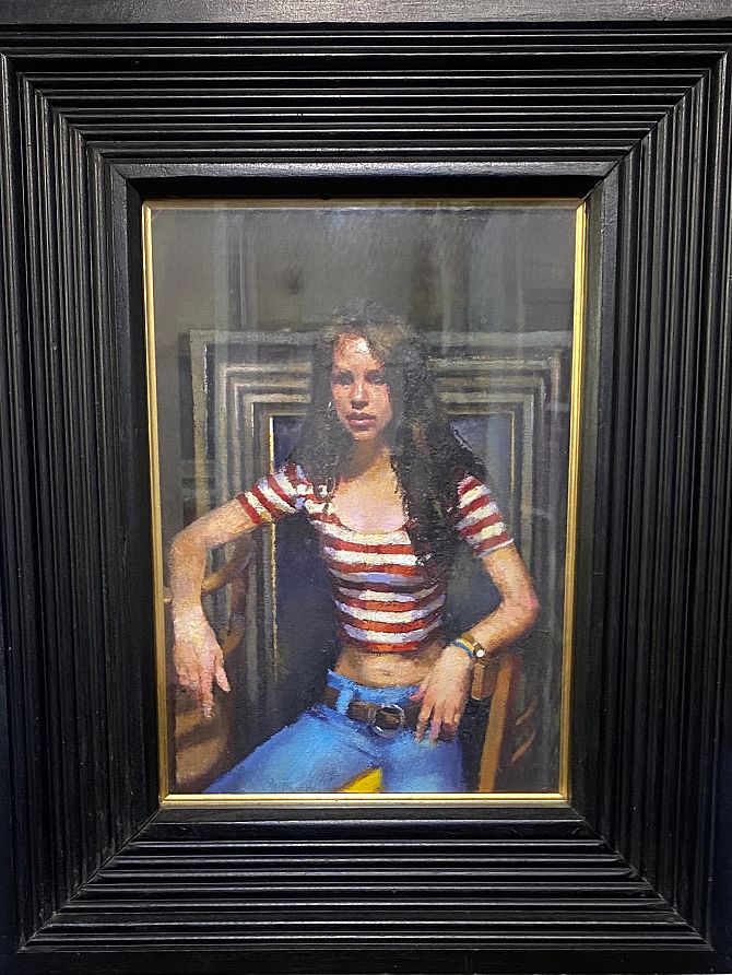 Robert Oscar Lenkiewicz (British, 1941-2002), 'Study, Romney Cook in striped top', oil on canvas, signed and titled by artist verso, 33cm by 23cm (ARR)