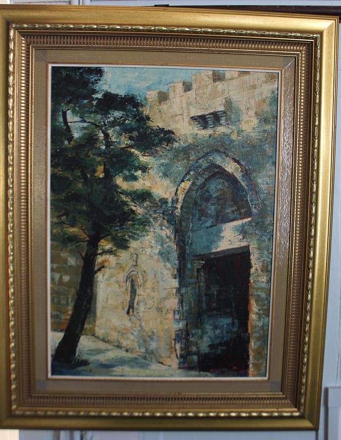Zagaria (1978), 'Zion Gate', oil on board, signed and dated, titled verso, 80cm by 57cm, framed.