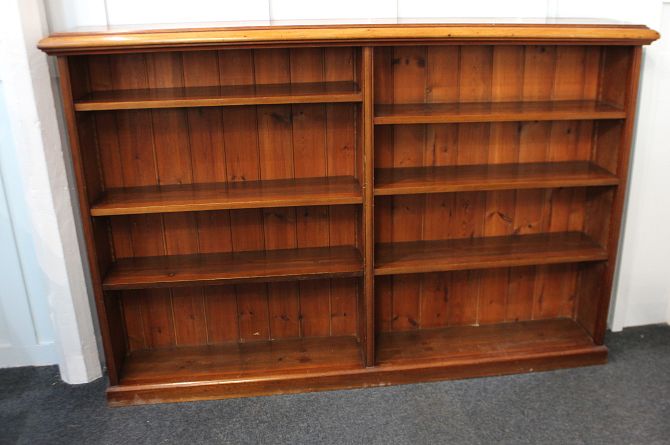 A mahogany bookcase with two adjustable shelves and reeded uprights, on bracket ...