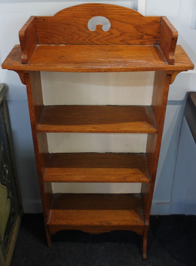 An Arts & Crafts light oak bookcase of small proportions, c.1910, 60cm wide by 23cm deep by 108cm high, (af).