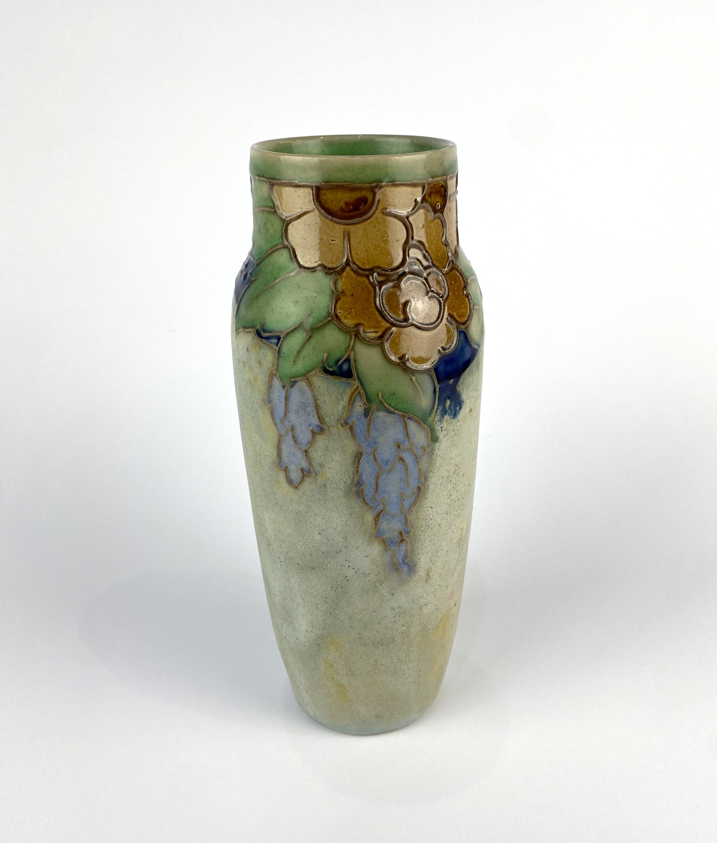 A Royal Doulton glazed stoneware vase with tubelined floral decoration 23.5cm high
