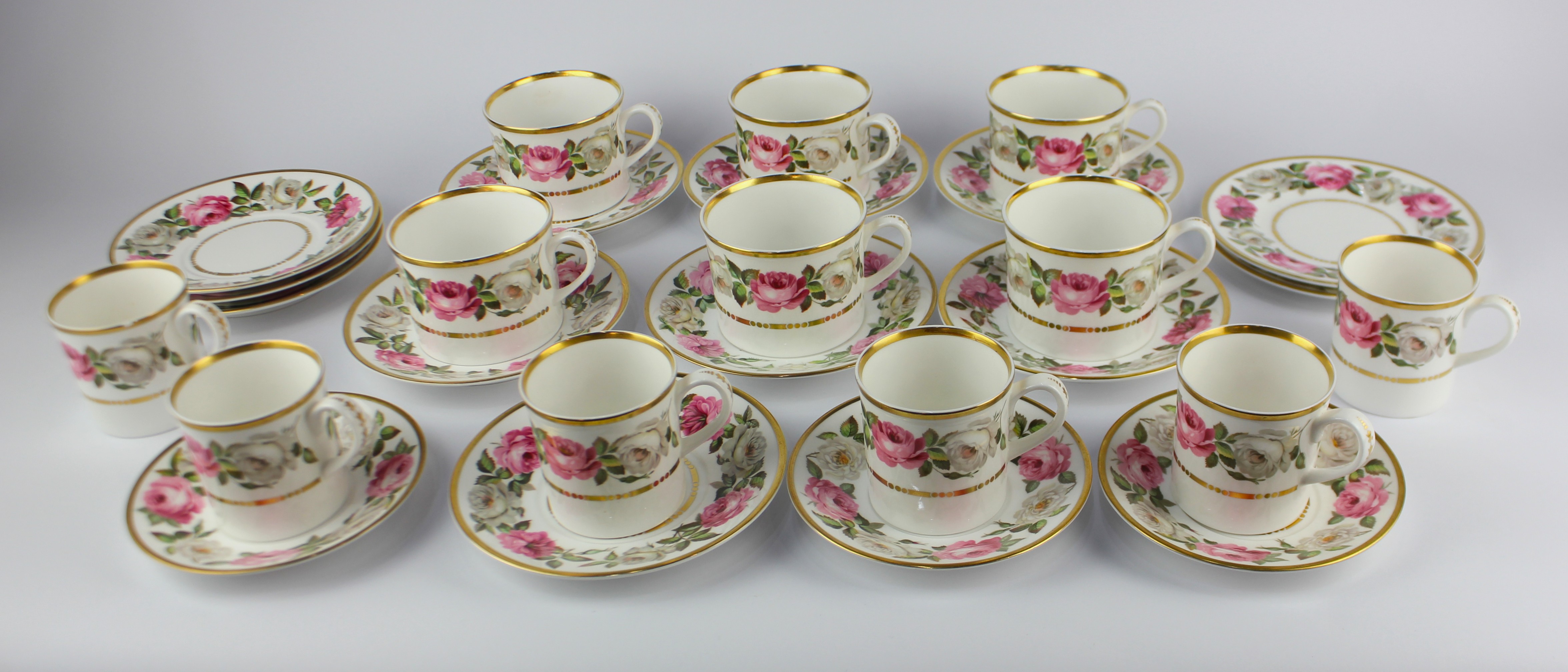 A Royal Worcester 'Royal Garden' pattern part tea service, comprising; six tea cups, six coffee cups, three saucers, ten larger saucers, and two side plates, red mark to base and dated 1969 (27)