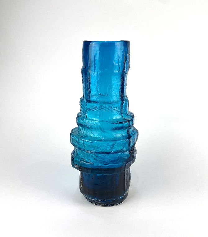 A Whitefriars 'Hoop' glass vase in Kingfisher blue, designed by Geoffrey Baxter, c.1967-1973, 28.5cm high.