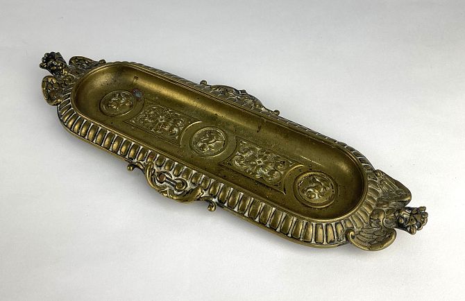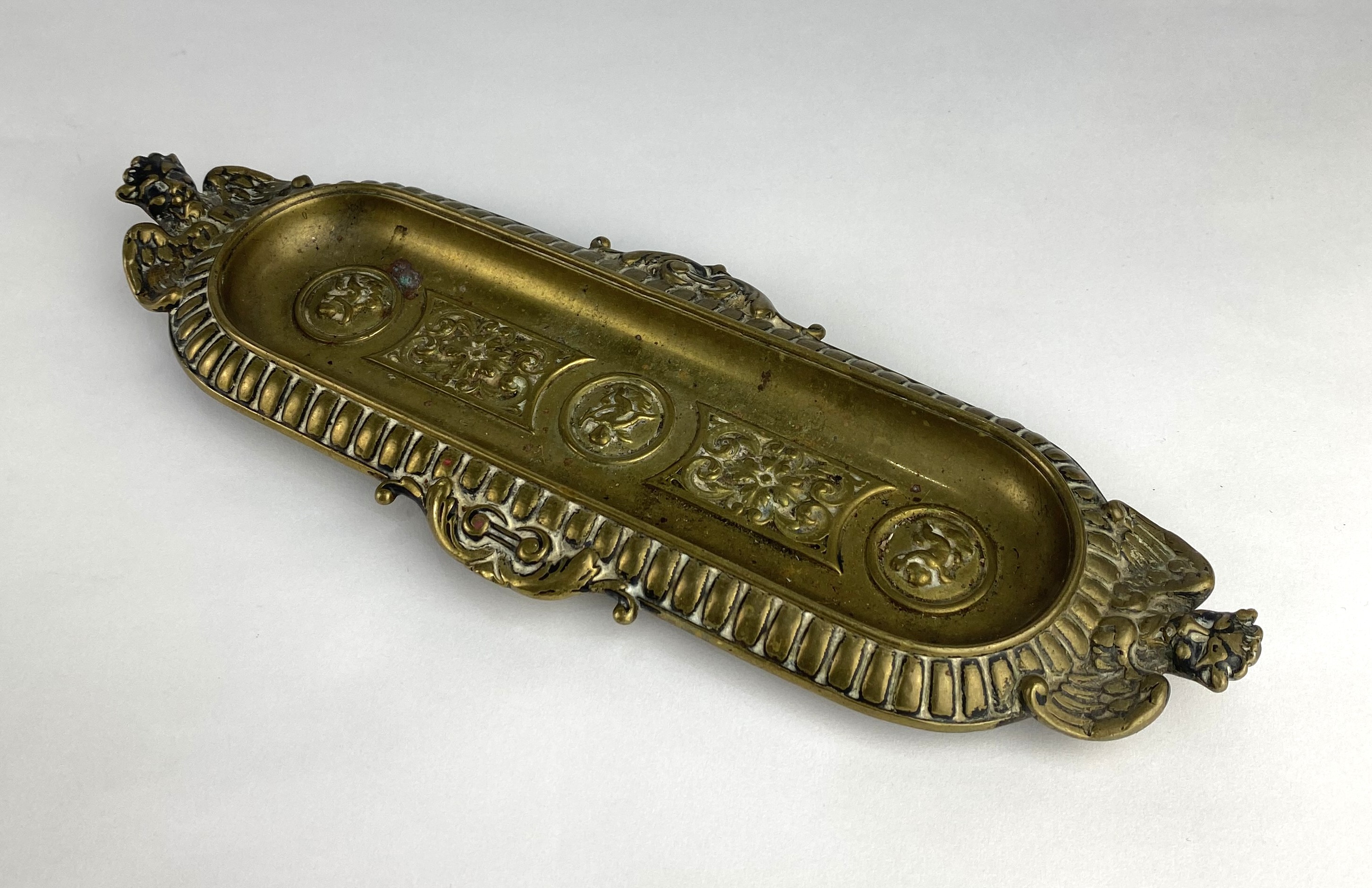An Edwardian cast brass pen tray on four feet 31.5cm long