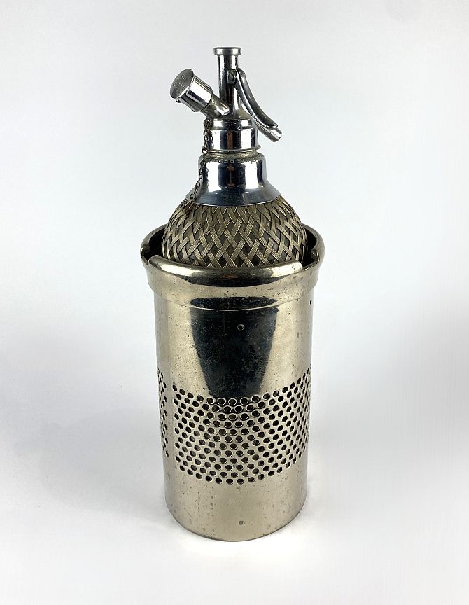 A vintage Sparklets wire-mesh-bound glass soda syphon 37cm high