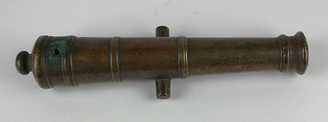 A bronze model of a canon, missing stand and fittings, 25cm long