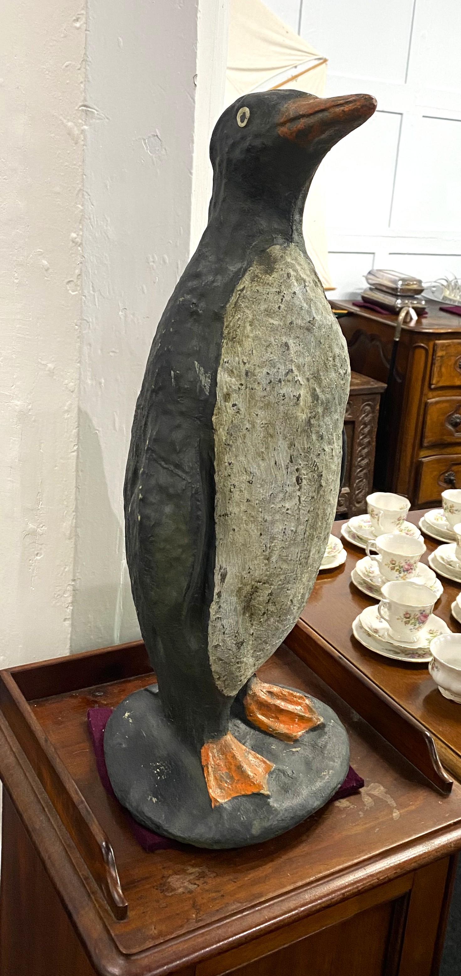 A coloured stoneware model of a Penguin, modern, 64cm high.