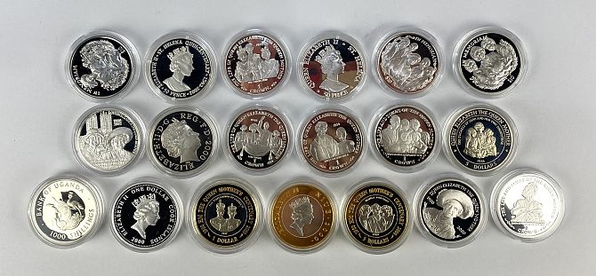 Nineteen silver proof crown size comemmorative coins mostly relating to the Queen Mother and Elizabeth II including a 2000 proof Five Pounds, note varying individual weights