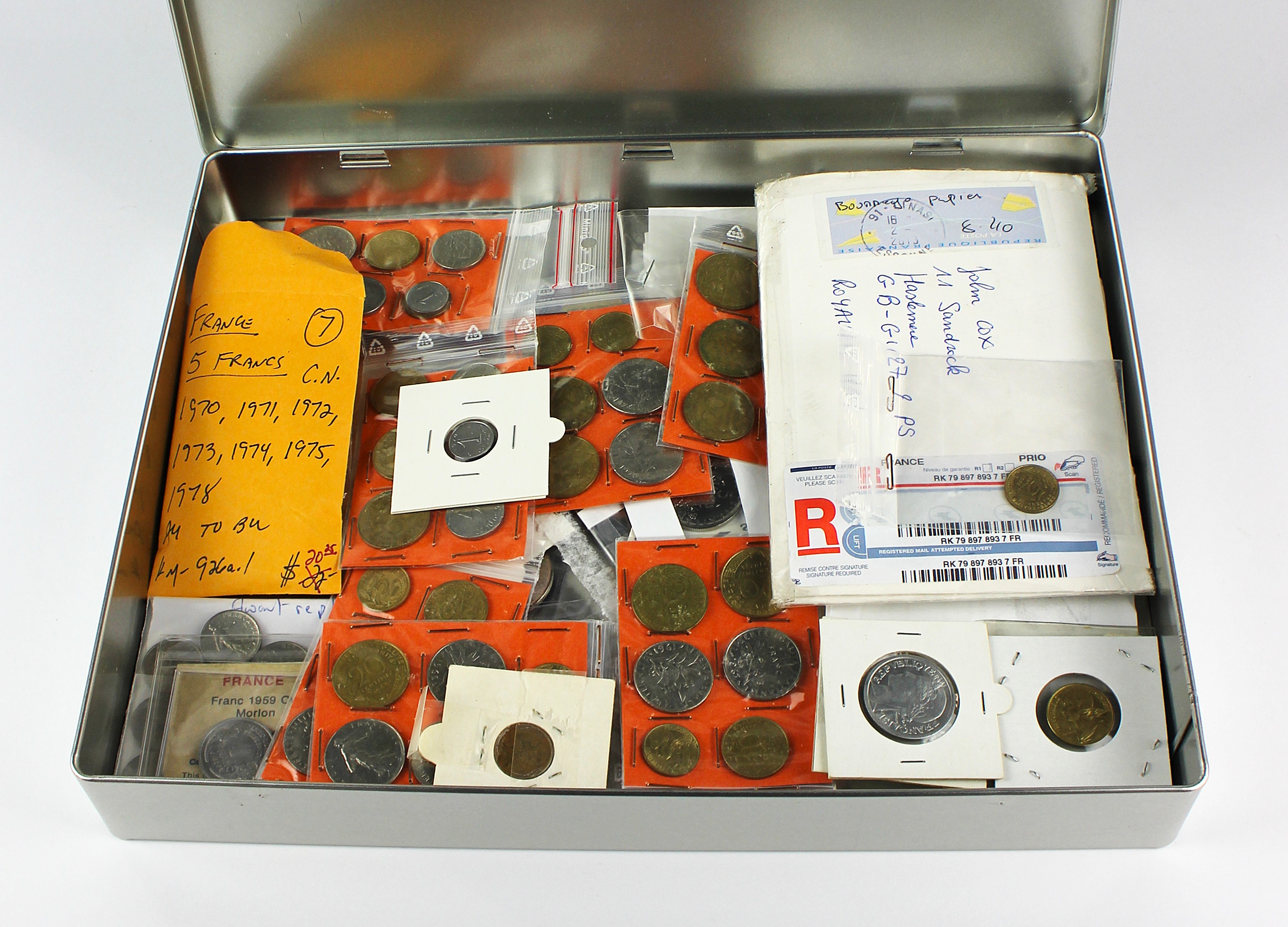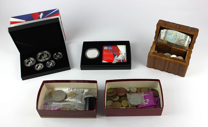 A collection of coins: including French Colonial African Countries, British decimal coins, Commemorative crowns, eight Bill of Rights two pound coins, six one pound coins, Britannia proof boxed sets, etc, (a quantity).