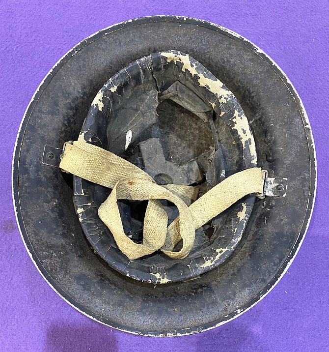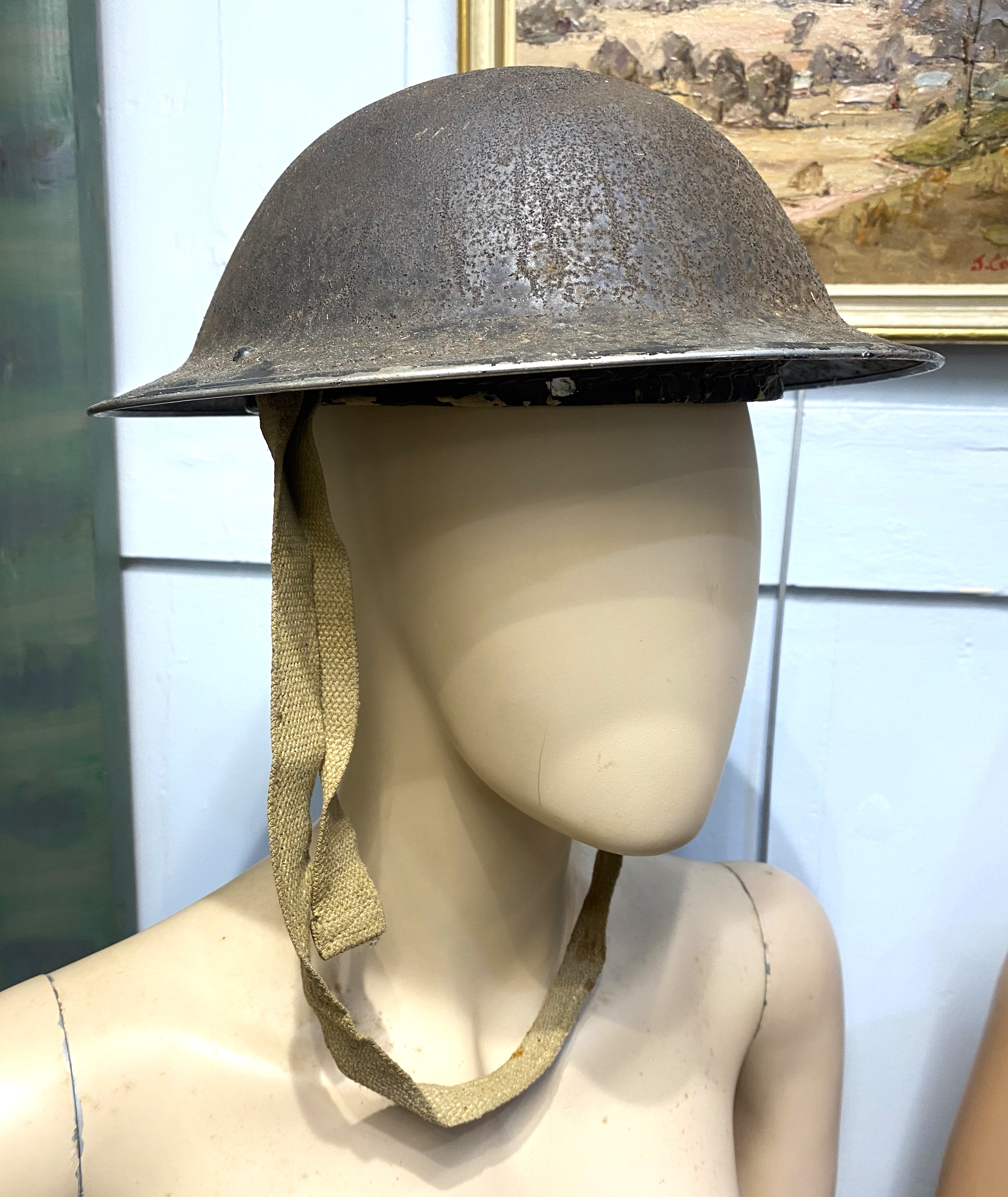 A British Second World War Brodie helmet MKII, with liner and chinstrap (a/f)