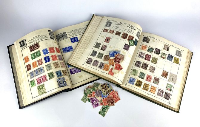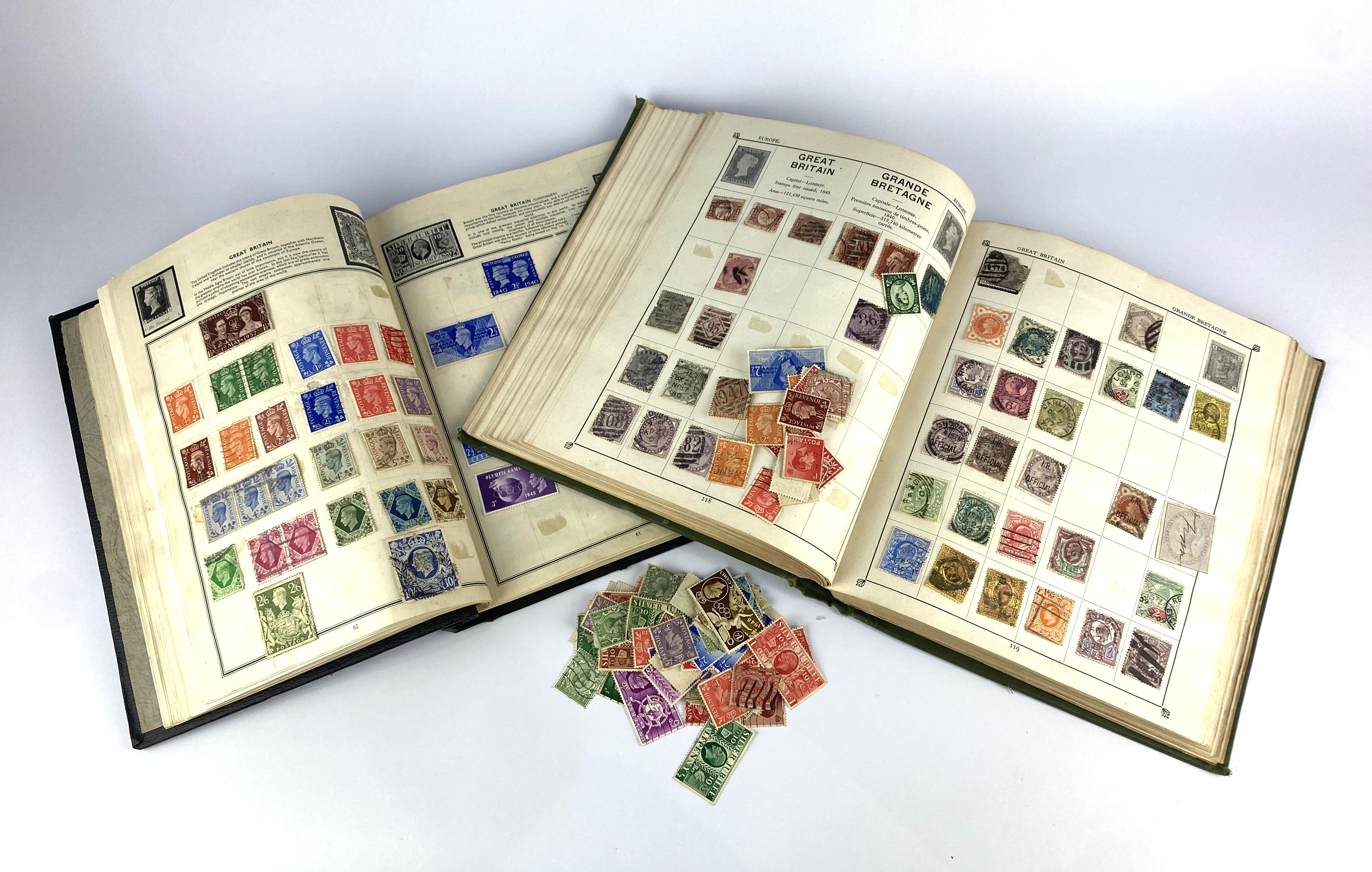 Two albums of British and International stamps to include Penny Reds, Brown and Red Seahorse etc., and a quantity loose