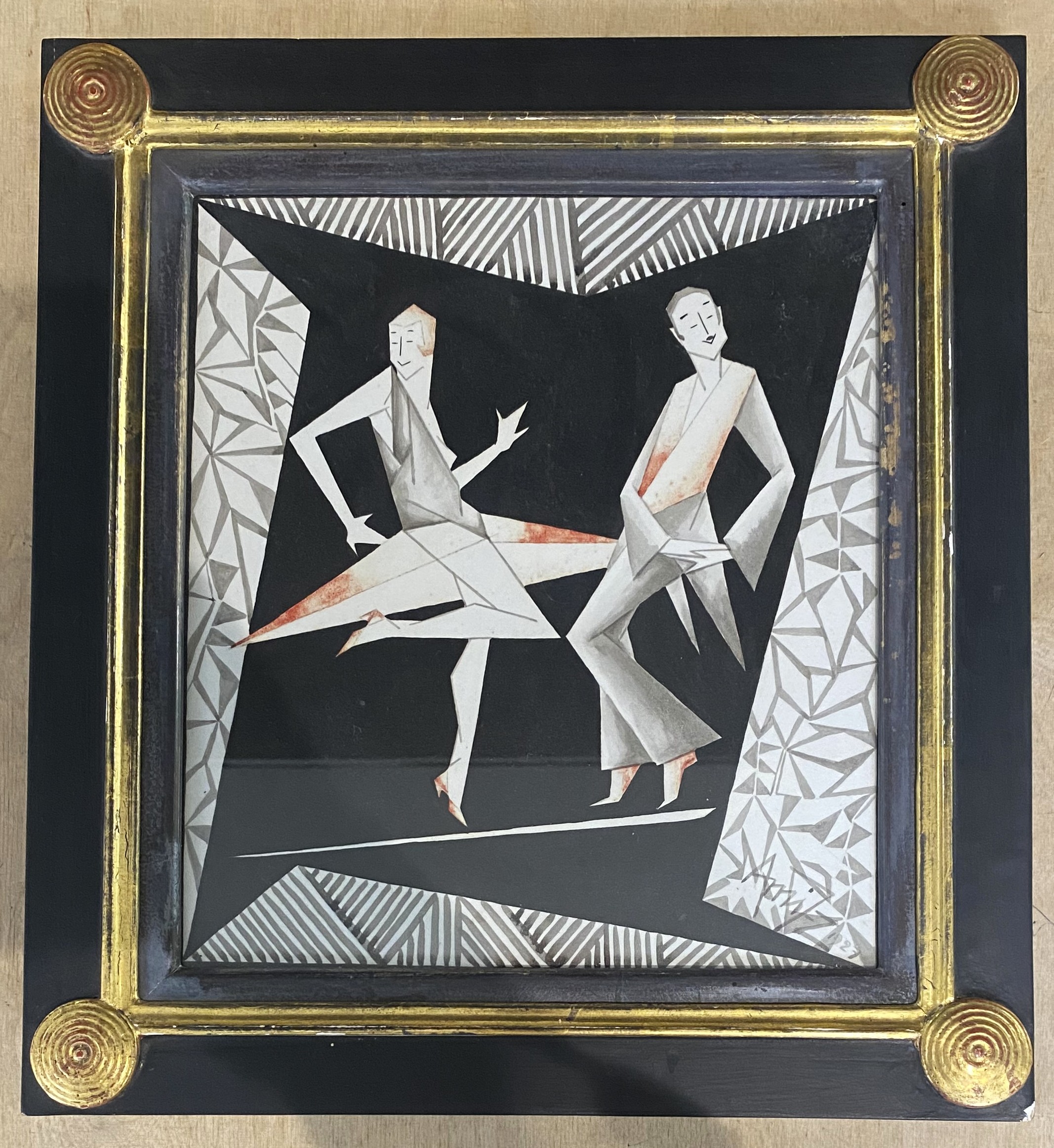 Ami Karina, also known as Amelie Zimmerdahl, (1898 - 1979), 'Charleston', 1927, an Art Deco watercolour and ink work on paper, signed and dated '1927', label verso for the Roy Miles Gallery, 29 Bruton Street, London, 26cm by 23cm, framed.
