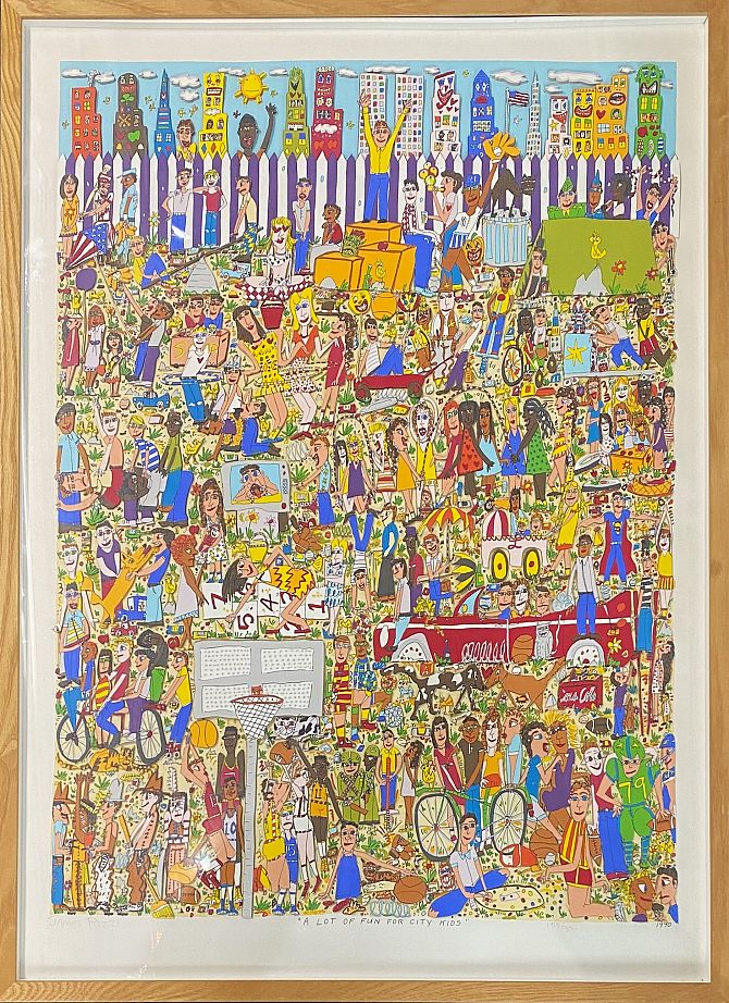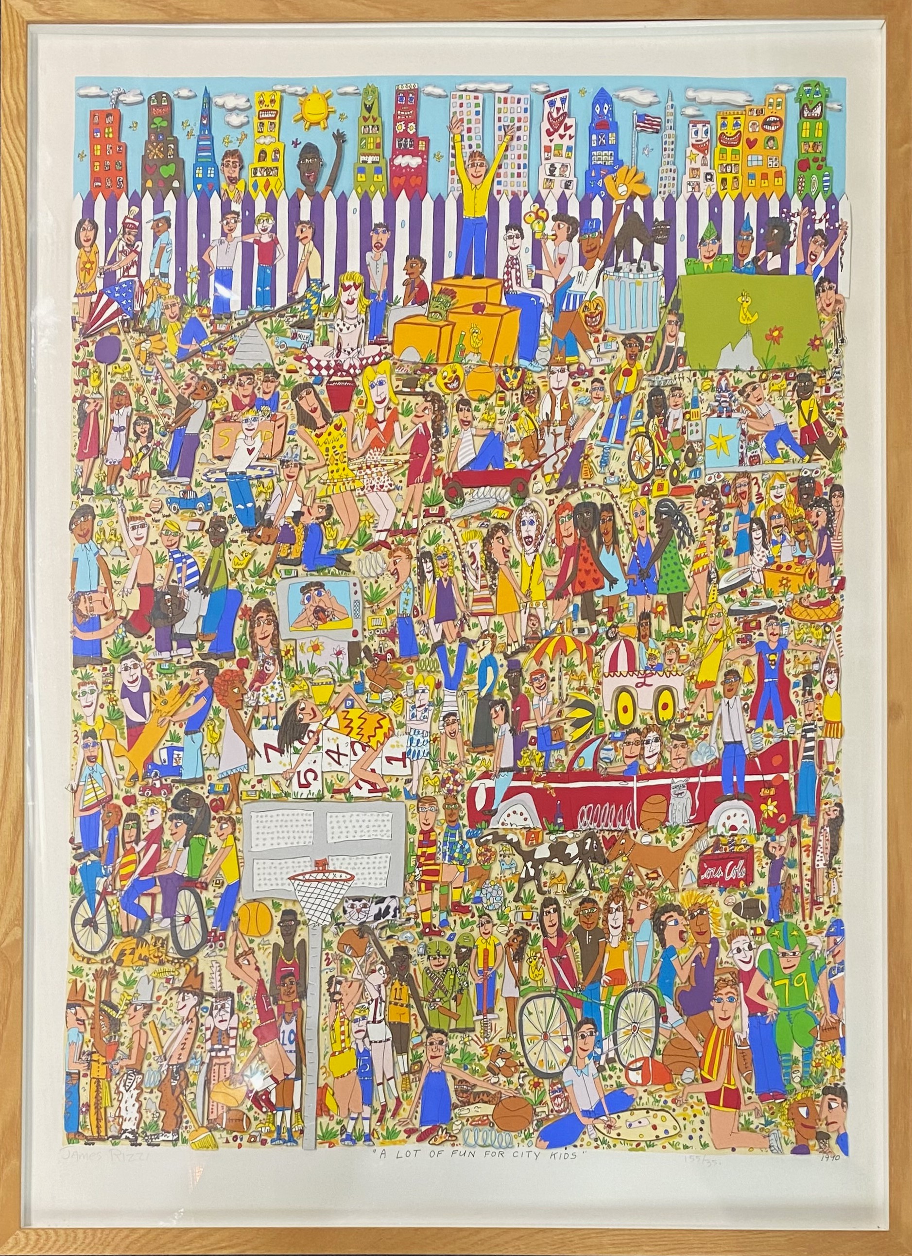 James Rizzi (1950-2011), 'A lot of fun for city kids', 3D colour serigraph, inscribed and dated 1990 in ink, numbered 155 / 350 and signed in pencil, 102cm by 72cm