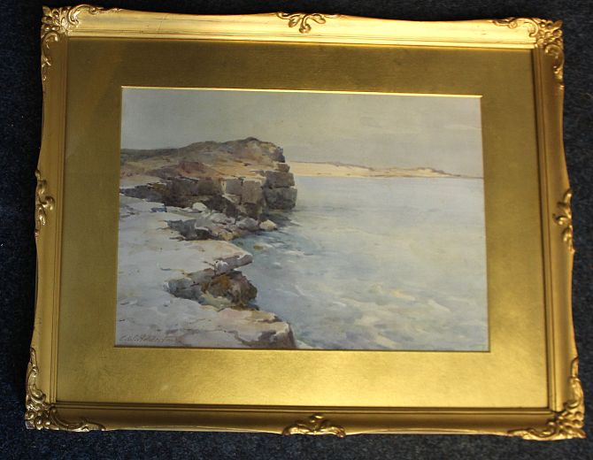 Charles William Adderton (1866 - 1944), 'Coastal Landscape', watercolour, signed, 27cm by 38cm, gilt gesso frame.