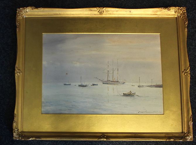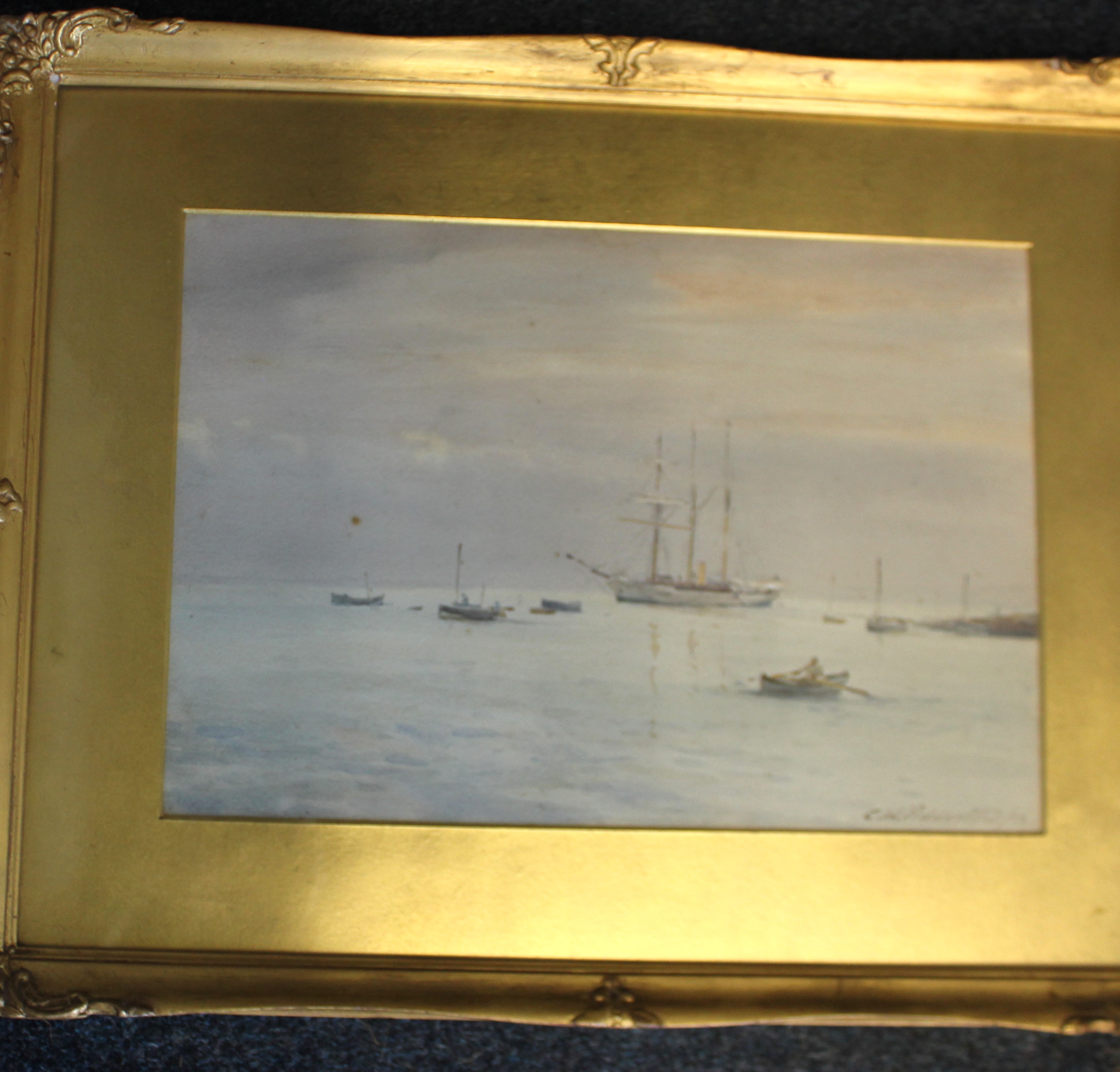 Charles William Adderton (1866 - 1944), 'Marine Scene', watercolour, signed, 27cm by 38cm, gilt gesso frame (frame chipped).