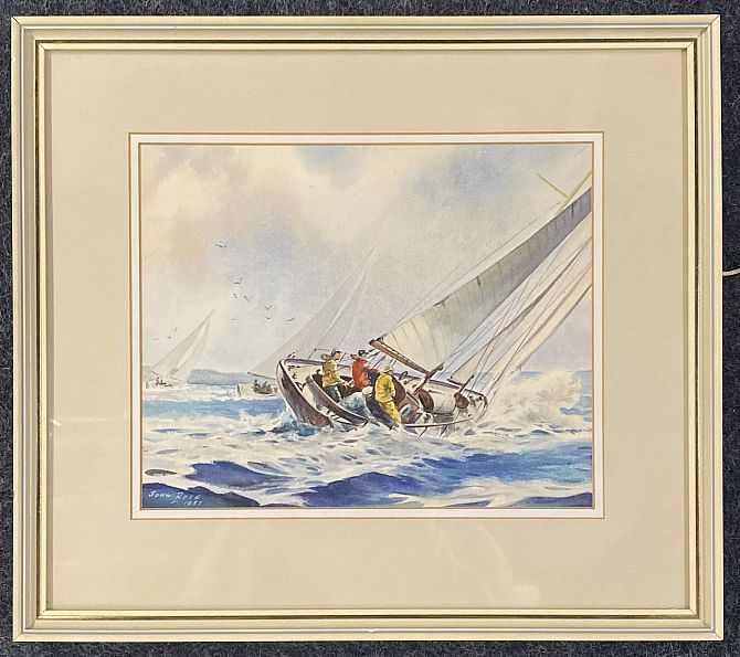 John Rose (20th century), 'Fair wind and fine weather', watercolour, signed and dated 1987, verso inscribed paper label, 20cm by 25cm