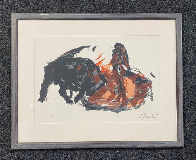 20th century school, bullfighting scene, print, numbered IX/XXX and indistinctly signed in pencil, 33cm by 47cm
