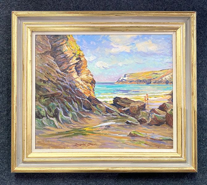 Dugald Stark (contemporary), Coastal beach view with two bathers, oil on canvas, signed, 49cm by 60cm