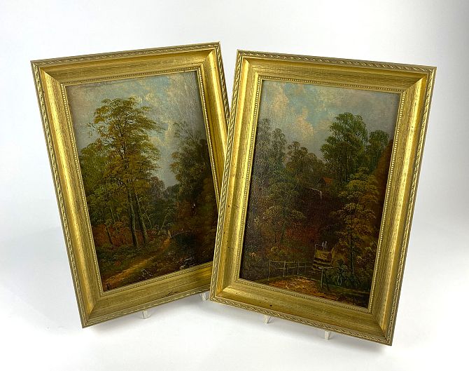 British School (19th century), a pair of woodland landscapes, oil on canvas, each indisinctly signed (possibly 'Allen'), framed, each 29.5cm x 18.5cm