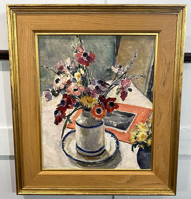 Mildred Bendall (1891-1977), 'Bouquet D' Anemones', oil on canvas, label verso for Whitford Fine Art, 6 Duke Street, St James, London, 58cm by 48cm, framed.