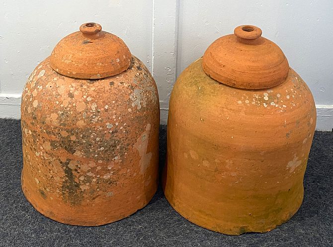 A pair of terracotta rhubarb forcers with lids height approx 47cm