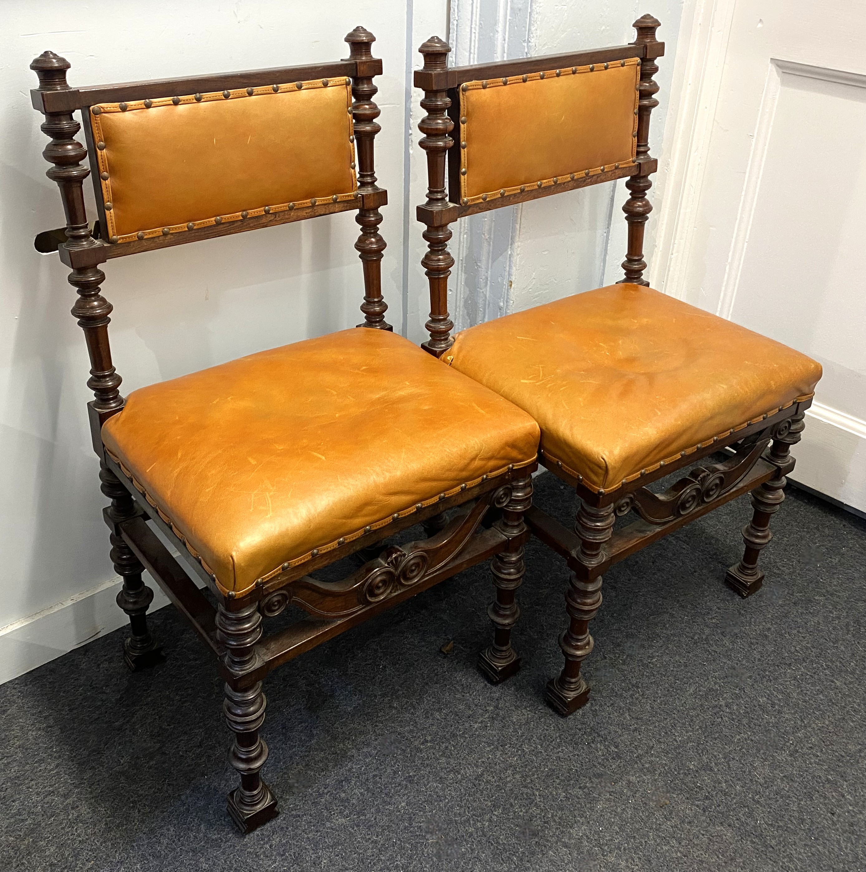 A pair of good quality 19th century rosewood and leather hall chairs / occasional chairs, with front 'hidden' castors.